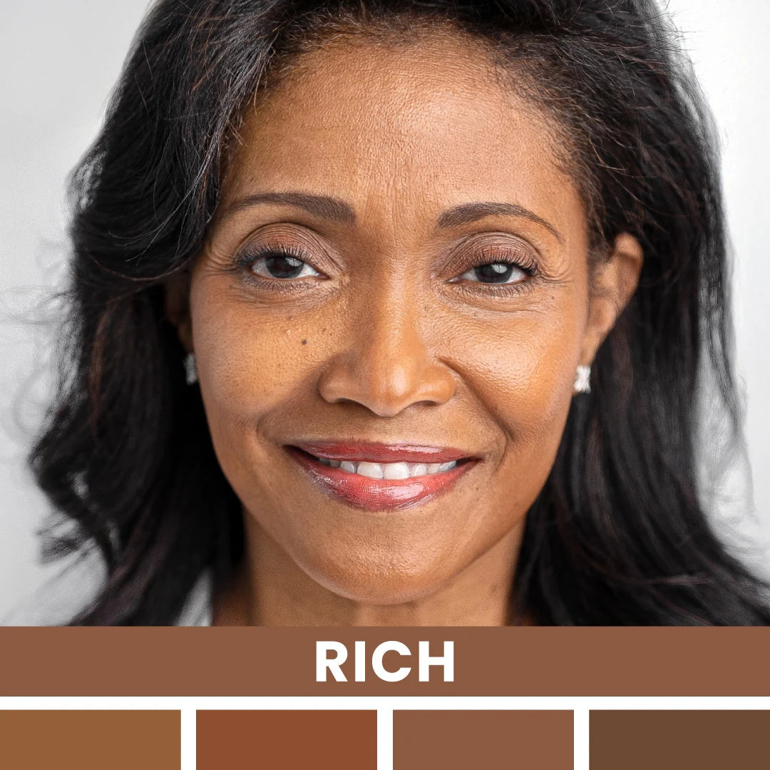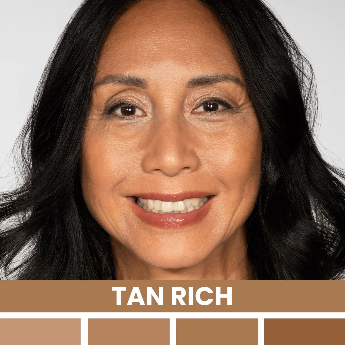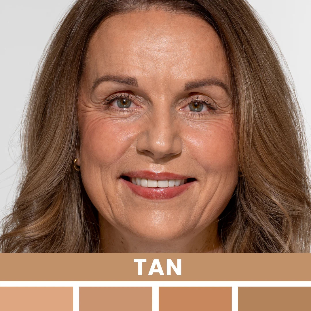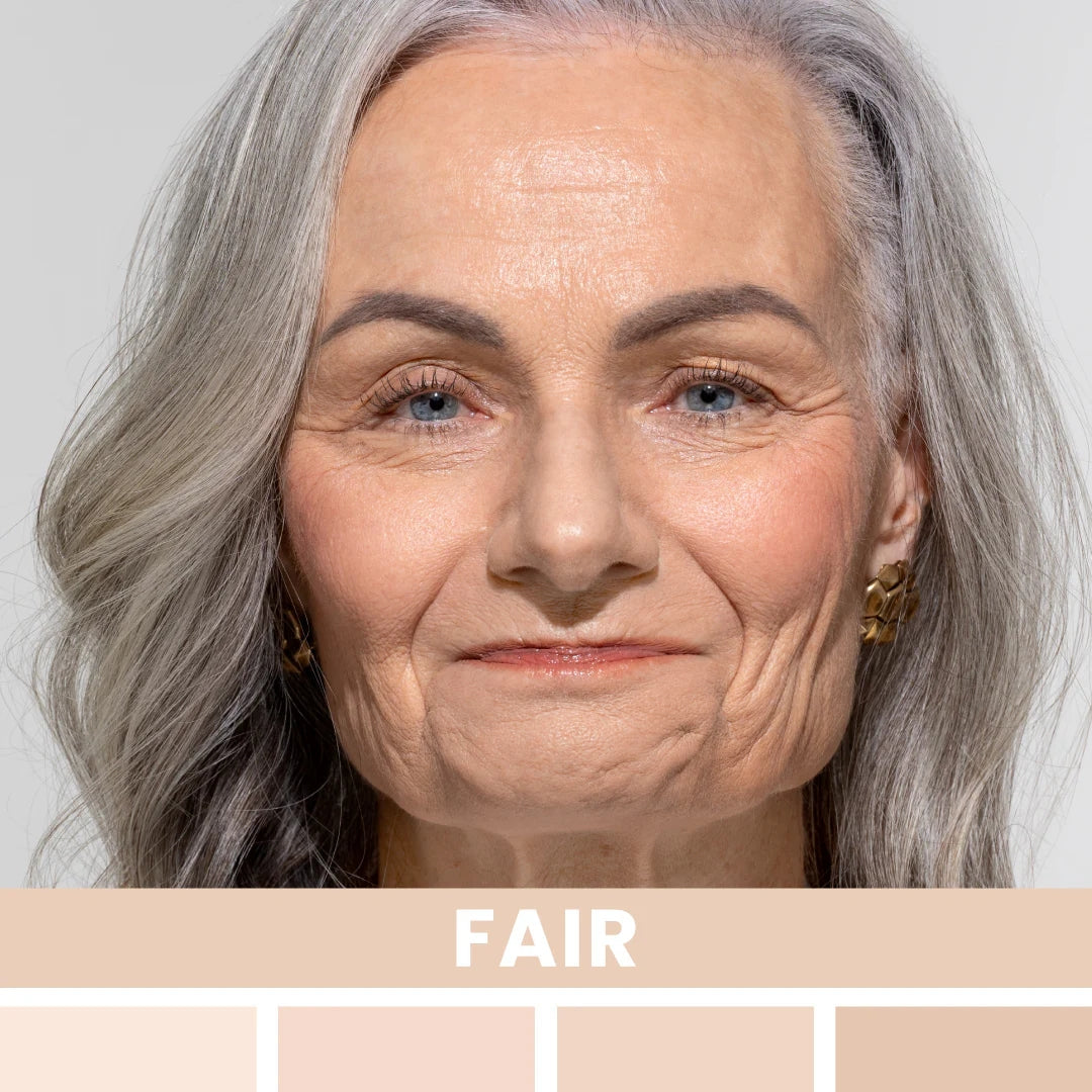 Lightweight foundation offers enough coverage to diminish age spots, neutralize redness, and blur pores, without settling into lines & wrinkles. Stays put, all day long!